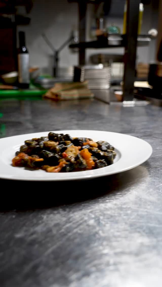 Gnocchi al nero di seppia con polpo, melanzane e pachino… straordinari!