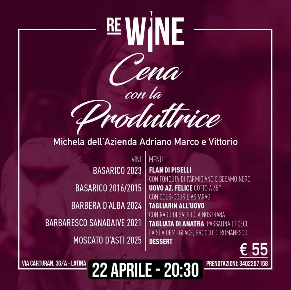 Il 22 Aprile ti aspetta una cena degustazione esclusiva con la produttrice: un viaggio tra vini d’eccellenza e piatti studiati per esaltarli al meglio.