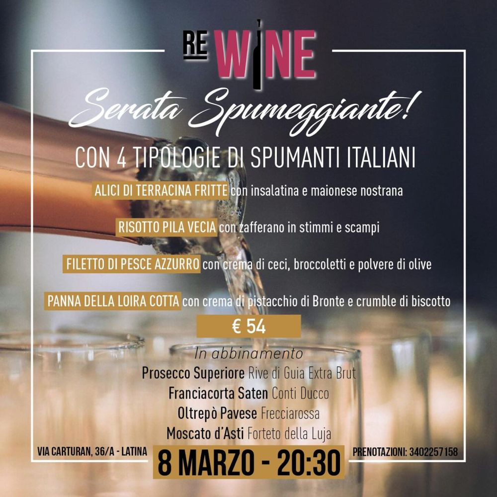 Affrettati a prenotare #rewine🍾 #ristoranterewine🍾 #cena #8marzo #degustazioni #bollicine #latinacittá #cittadilatina #wine #food